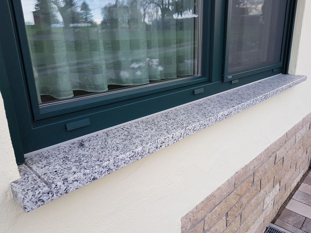 Lieferung und Einbau von Fensterbänken aus Naturstein nach Maß. Wir sind weder an Standard-Längen noch an Standard-Breiten gebunden.